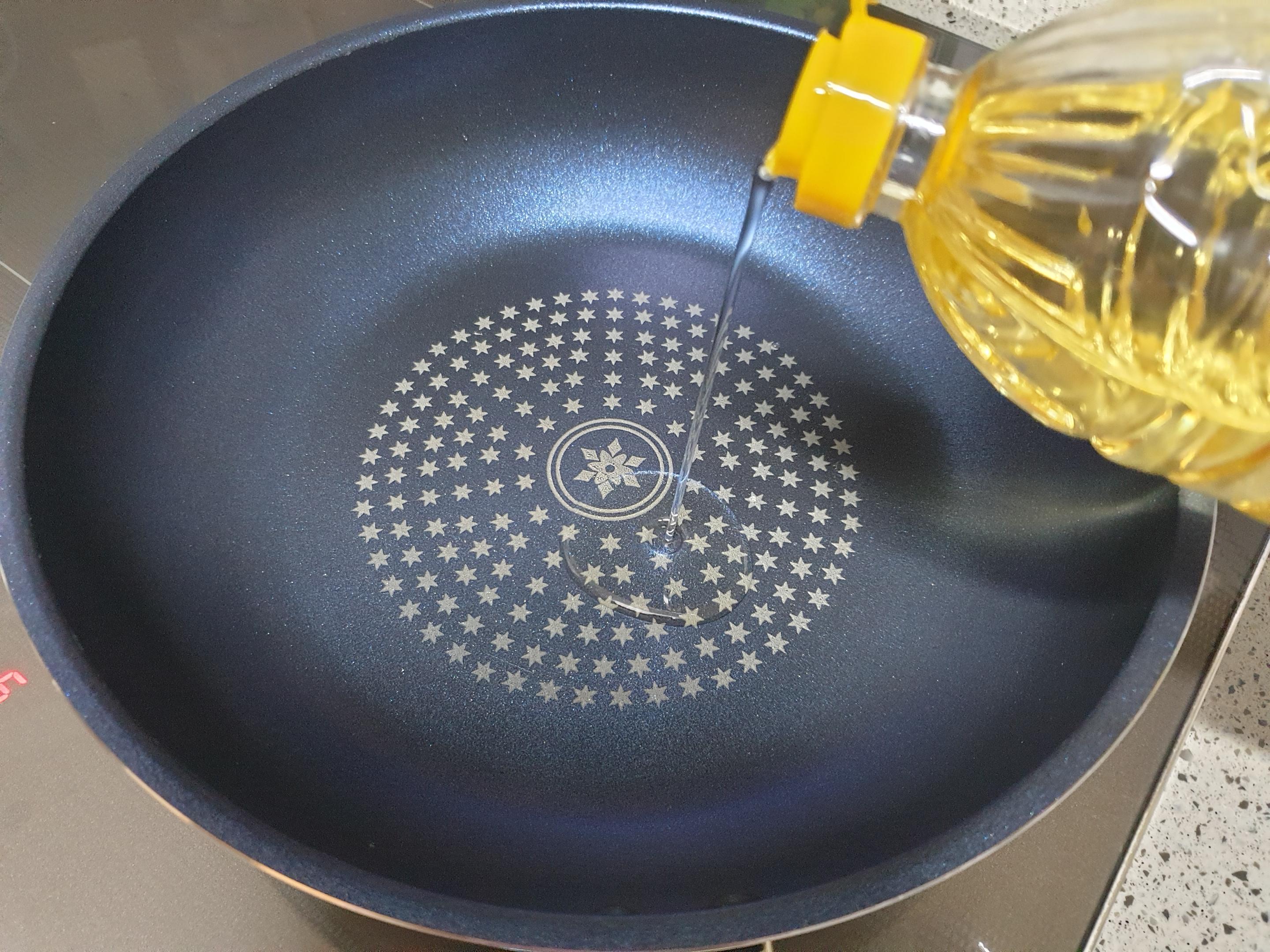 이번에는 식용유를 이용해서 남은 불순물을 제거함과 동시에 프라이팬 면을 코팅을 해주는 과정이 들어갑니다.
