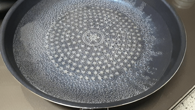 새 프라이팬이 갑작스러운 온도 과열로 인해 변형이 될 수 있기 때문입니다.